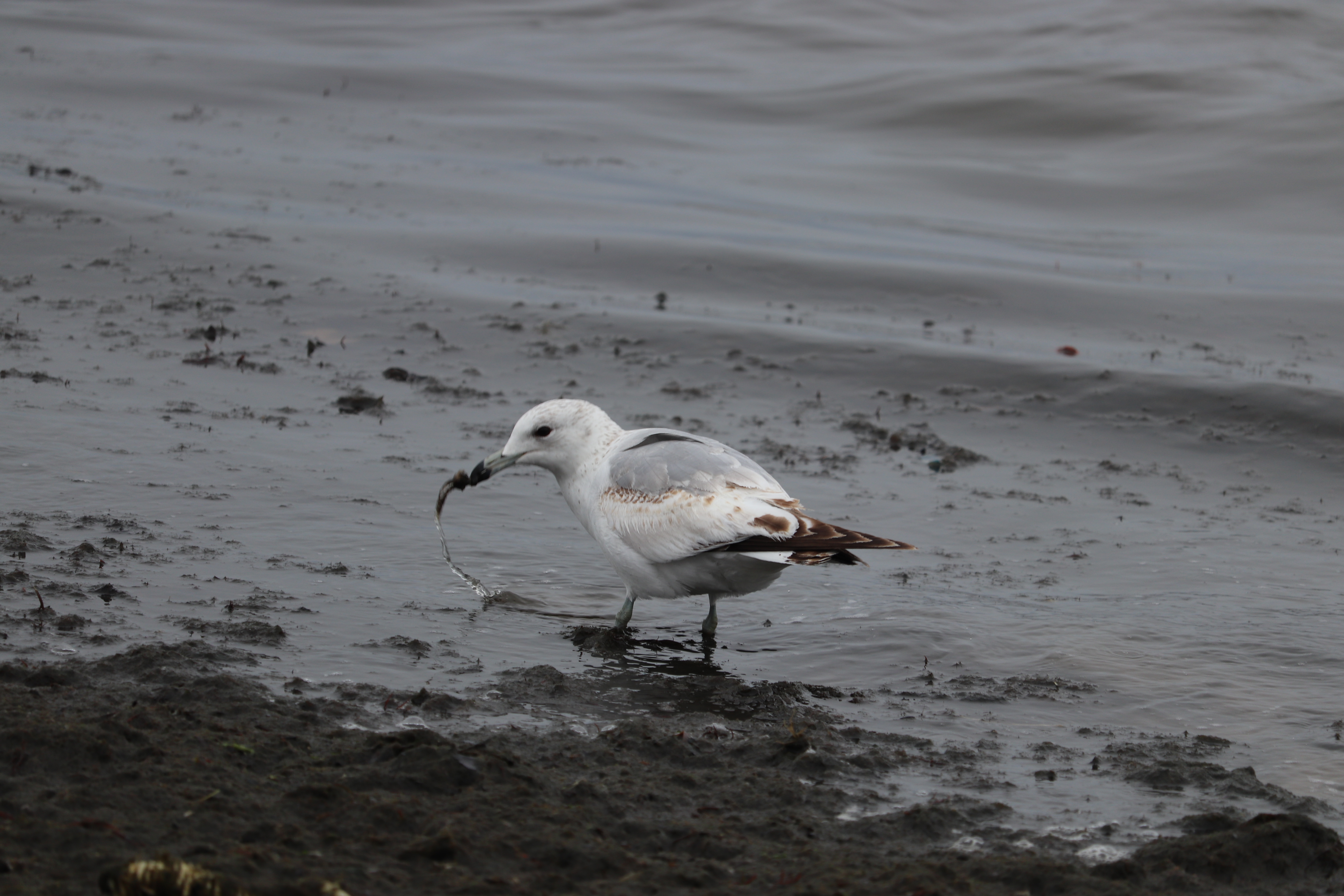 Gulls are largely omnivorous, and are considered opportunistic scavangers. Some gulls (the ones you may be most familiar with) like the American Herring Gull or the California Gull are kleptoparasites, a specific term for critters that get food specifically by stealing it from other animals or, famously, people. Every time a seagull snatches your lunch, that’s kleptoparasitism at work, and kleptoparasitism doesn’t discriminate. Gulls parasitize people, following fishing vessels to scoop up bycatch or snag a spare fish from the trough. They time their visits to garbage dumps to coincide with trucks bringing new waste, and with lunch rushes at restaurants to pick up fresh scraps, but people are not their only targets. Gulls have been known to harass Osprey and Hawks into dropping their food for the gulls to snatch up, a behavior I can personally attest to as I see it nearly every day at work. Gulls lurk behind specialist species like Oystercatchers, letting those birds do the work of cracking open tasty mollusks and the swooping in to steal the prize at the last moment. Those Heermann’s gulls I mentioned earlier are famous for snagging fish straight out of Pelican’s mouths. Smaller gulls like Laughing gulls or Bonaparte’s gulls are themselves often victims of larger gulls who bully them out of fish catches (this behavior extends to Terns—a close relative of gulls. I see Common Terns harassing Least Terns on the beach at least every week). I personally have seen gulls in Monterey bay snatching bycatch from sea Otters, and some quick research shows some people from the same area snapping pictures of seagulls stealing whole fish straight out of an otter’s hands (extra impressive considering I personally would not dare provoke any mustelid).